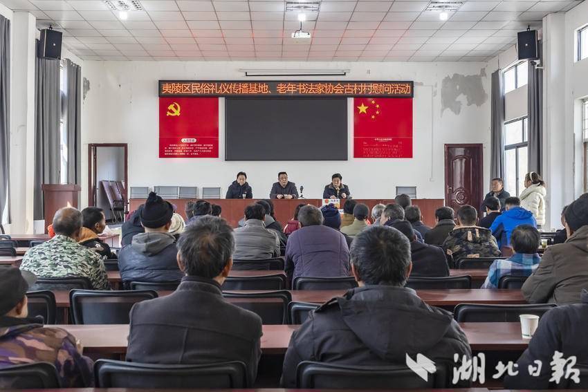 湖北日报客户端讯(通讯员黄廷珍)1月12日,宜昌市夷陵区民俗礼仪传播基地携手区老年书法家协会,走进樟村坪镇古村村开展“寒冬送温暖”慰问活动,为50余户孤独老人、残疾人、困难户及老党员送去冬日关怀与新春祝福。